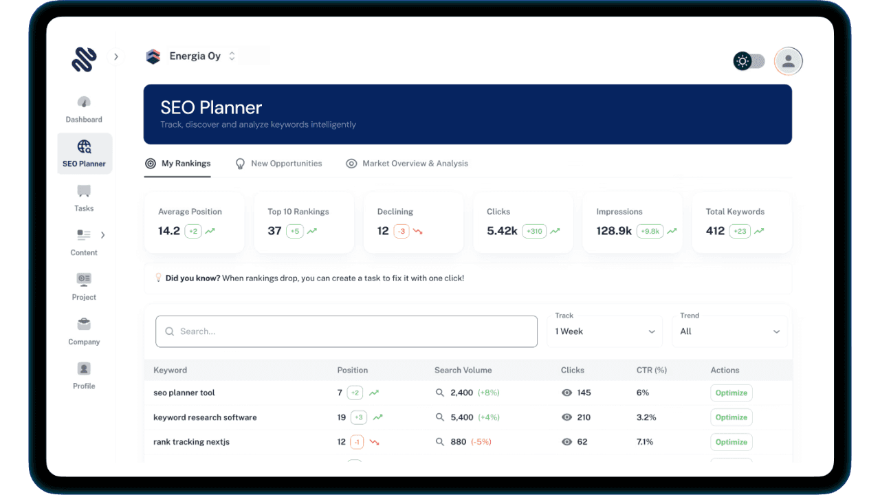Tiedät, että sinun pitäisi luoda tehokasta sisältöä, seurata avainsanoja ja optimoida sivustosi. Mutta kuka ehtii? Kädet on täynnä pyörittämään varsinaisen bisneksen pyörittämisessä.