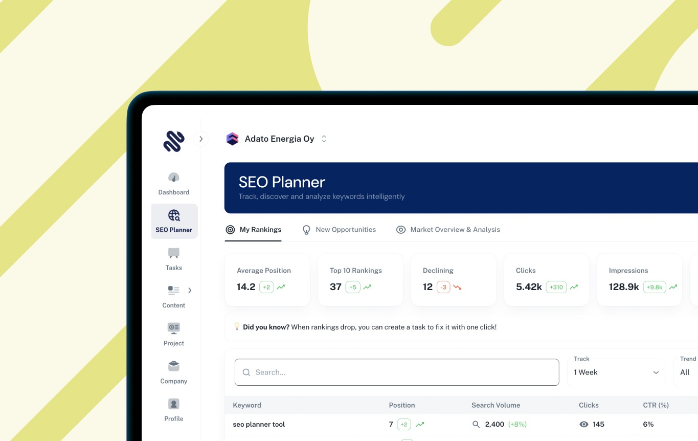 Emme rakentaneet SEO työkalua. Rakensimme autonomisen järjestelmän, joka indeksoi, oppii ja mukautuu markkinoihisi reaaliajassa. Sen jälkeen lisäsimme ihmistuntijat huolehtimaan siitä puolestasi.